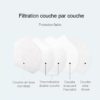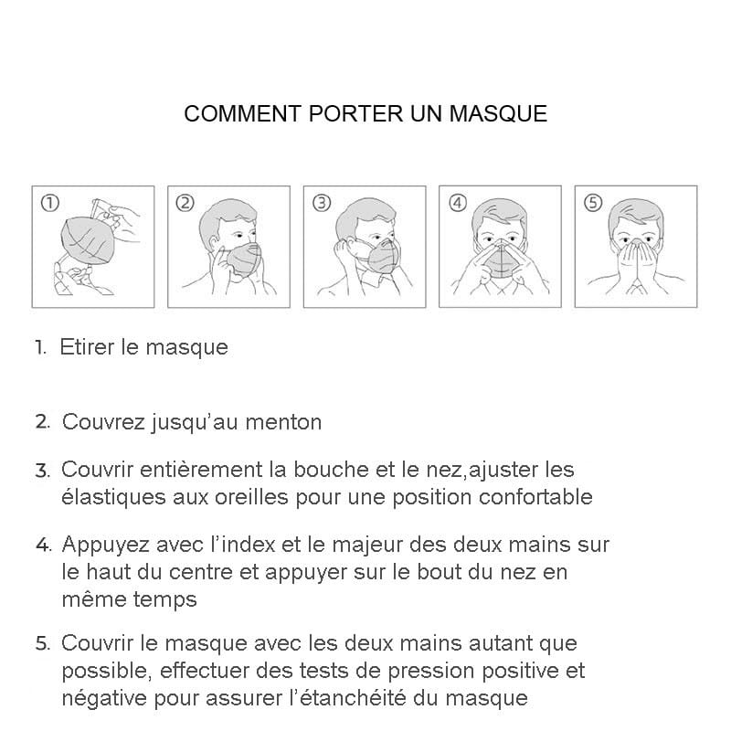 | Caractéristiques du produit | Matériel: Complexe 5 couches de non-tissés polypropylène, liens sans latex tissu non-tissé, évacue l'humidité. Barrette nasale en aluminium. Hypoallergénique. |